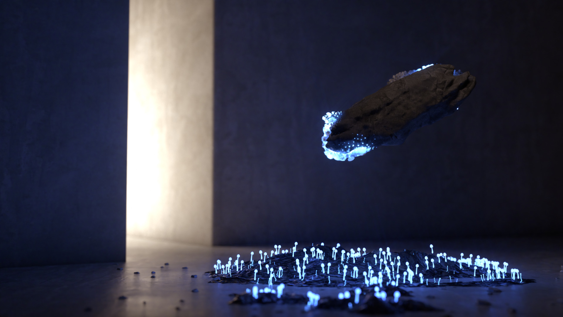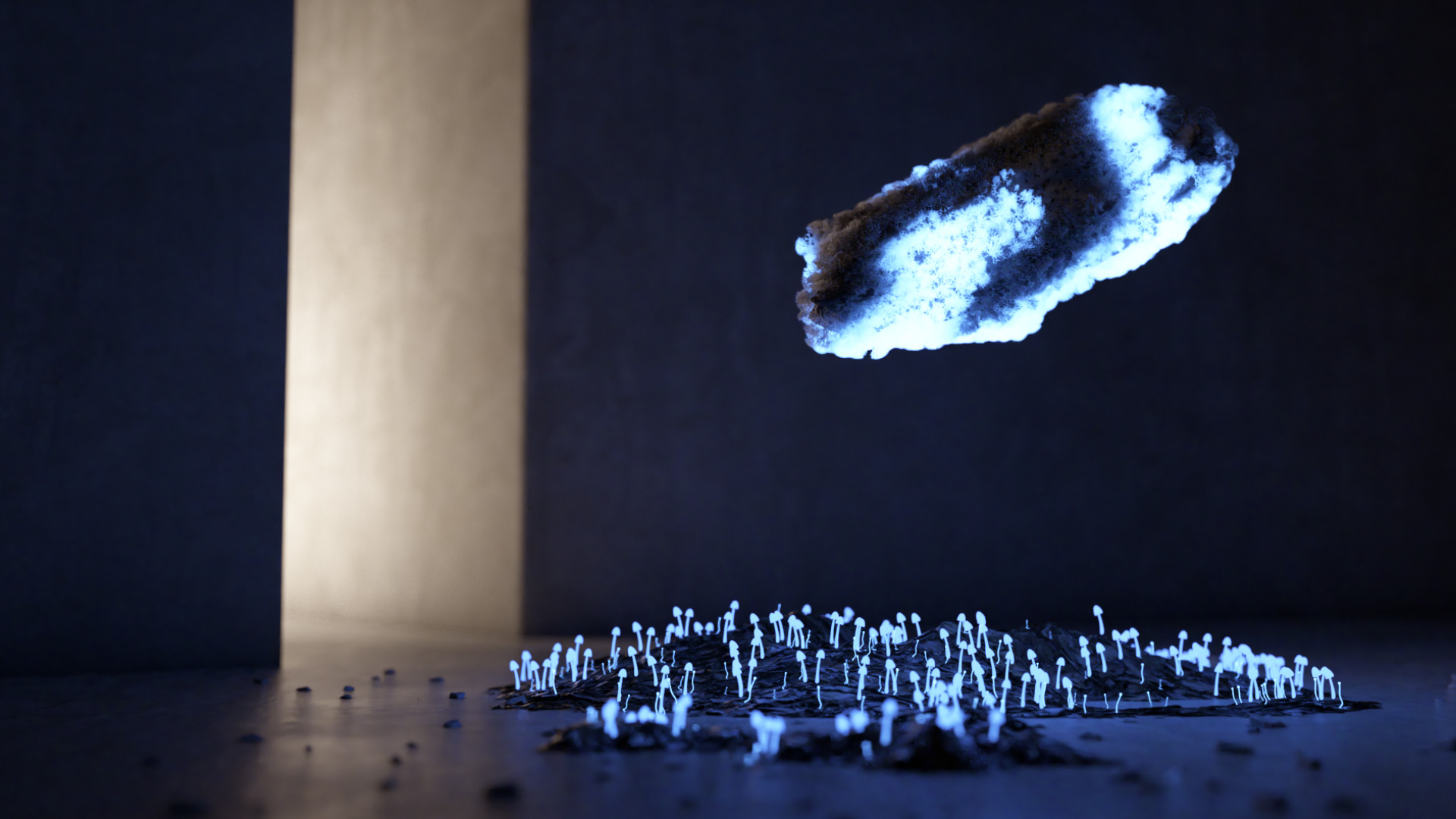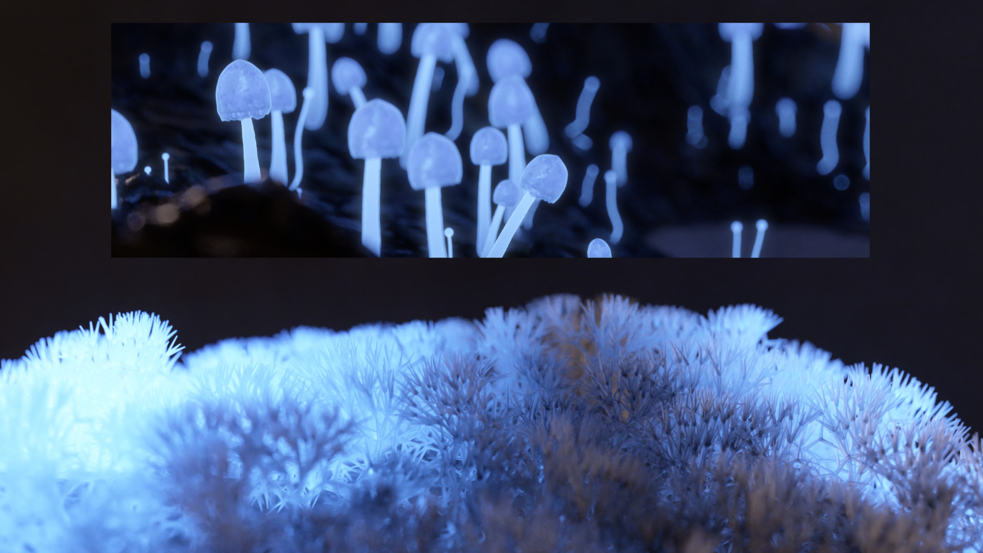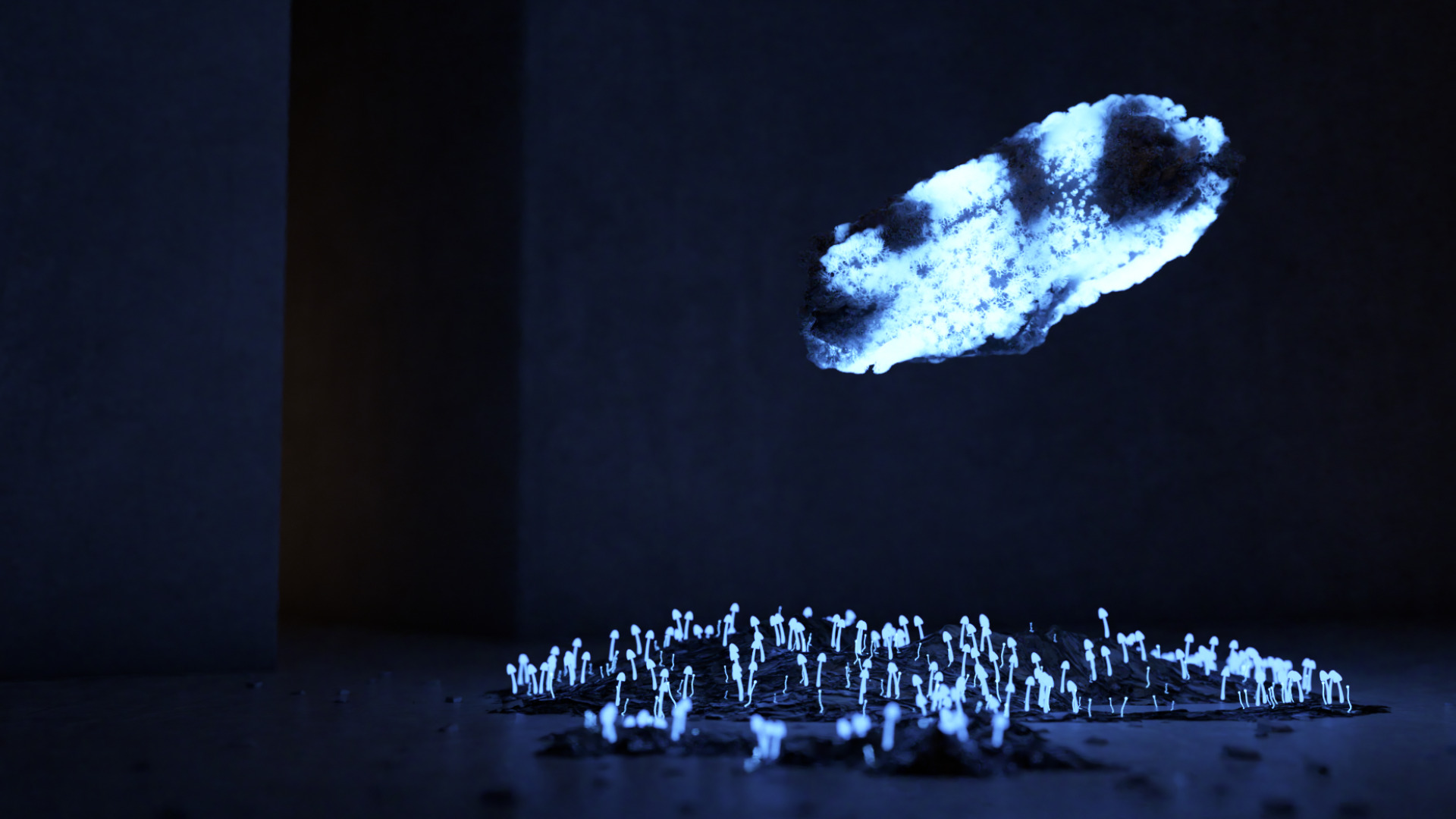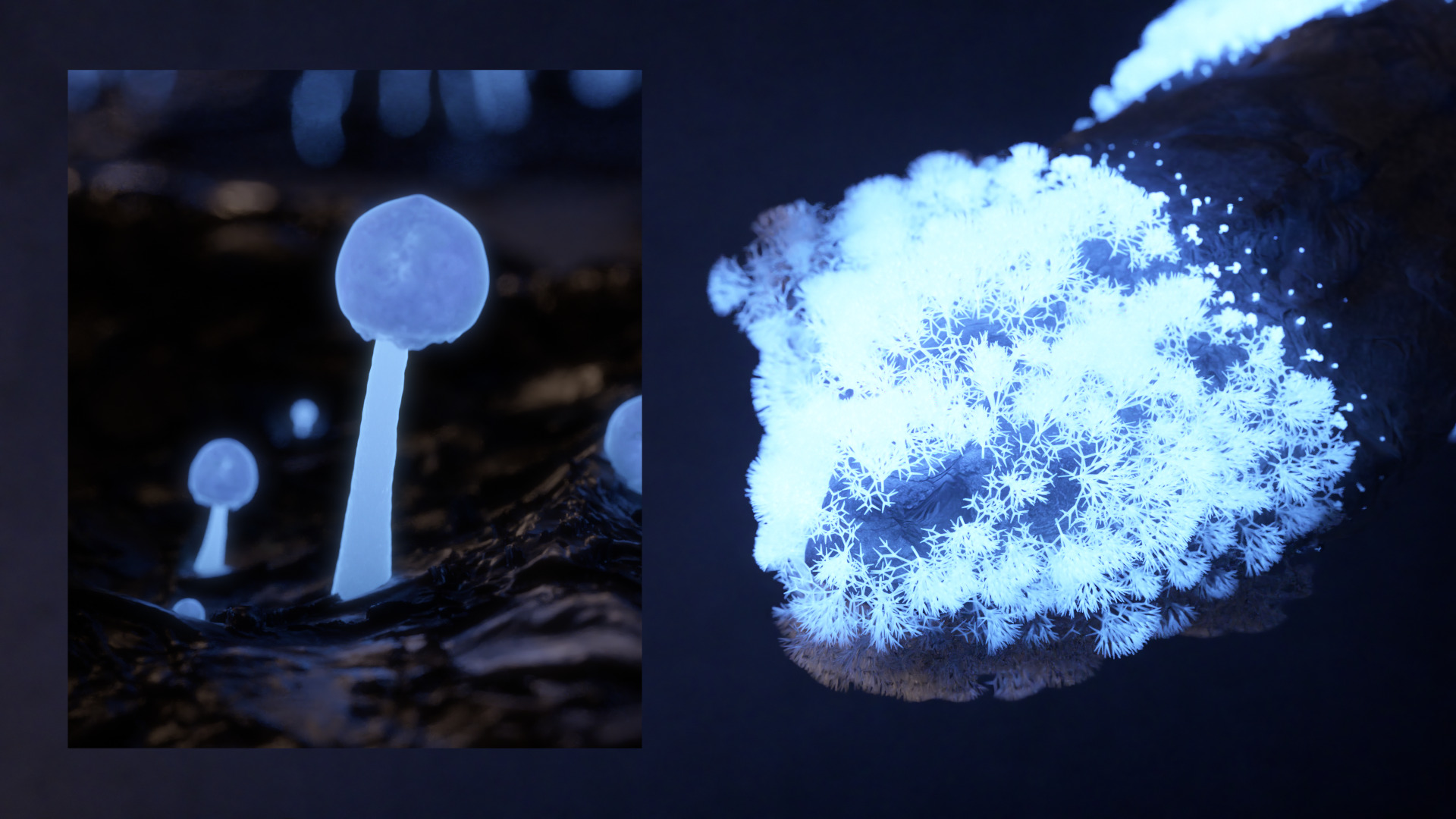 Au creux des ombres (In the Depths of Shadows) is a short film made in 3D, presenting natural bioluminescence in an aestheticised way.
