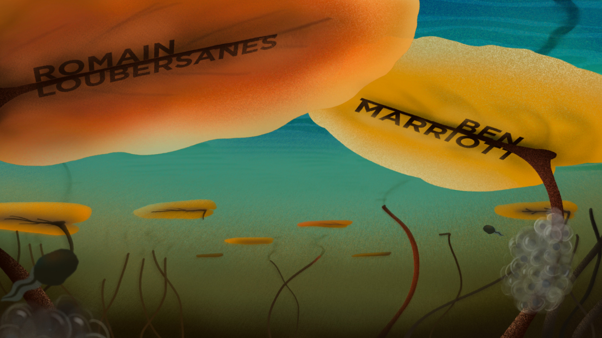 J'ai choisi de révéler les noms des intervenants dans des univers extérieurs naturels, grâce à des jeux d'ombres et de lumière.