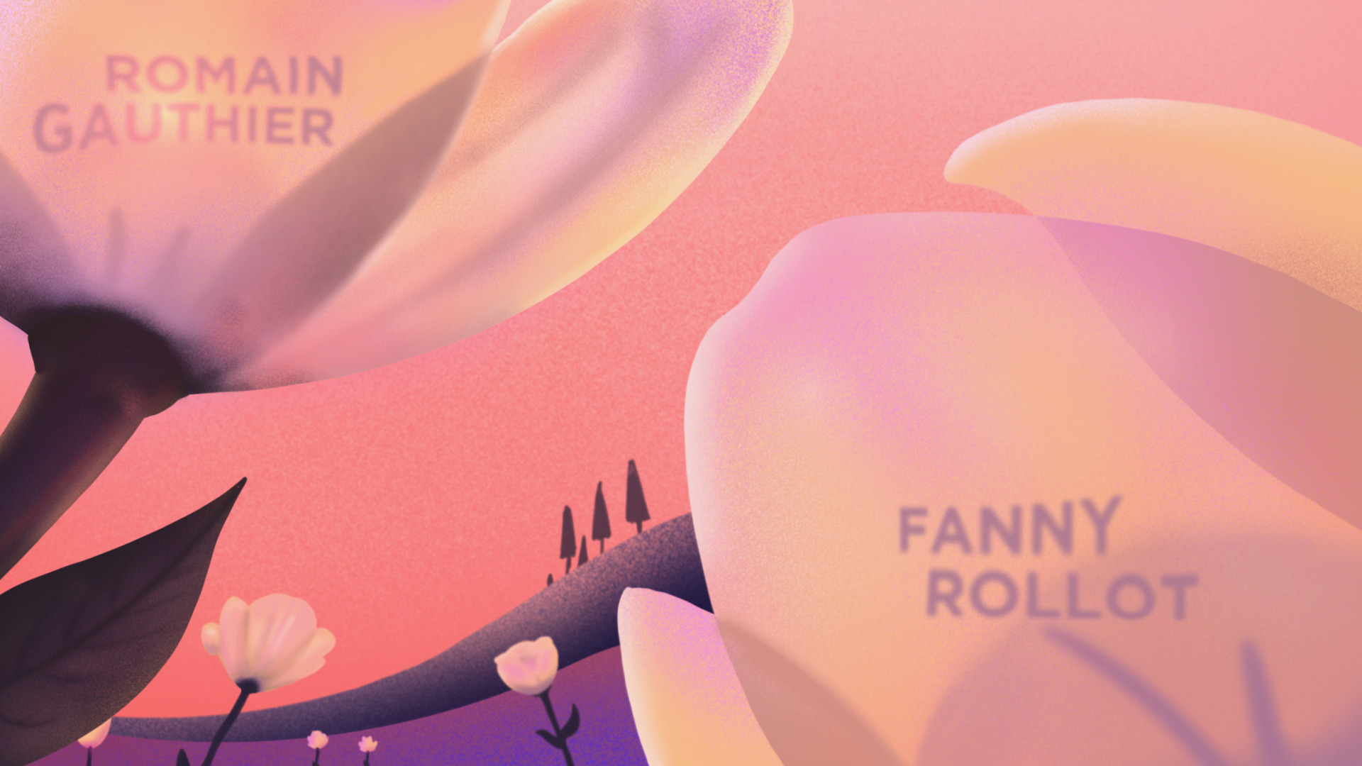 I chose to reveal the names of the speakers in natural outdoor settings, using light and shadow effects.